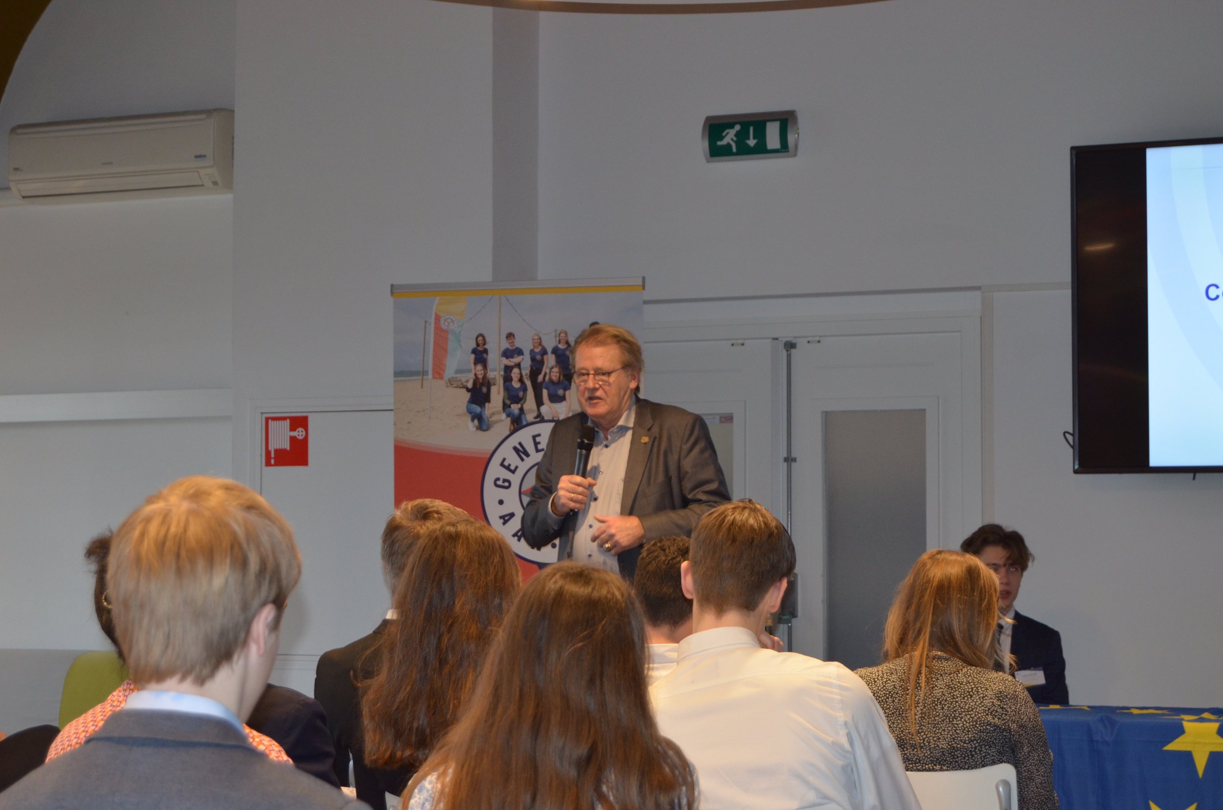 Onze eerste gastspreker, Jaap Smit, leidde onze MEP-week in. Hij vertelde ons veel over debatteren en politiek, en hoe deze twee begrippen, mits ze goed uitgevoerd worden, heel machtig kunnen zijn. "Tijdens een spel moet je op de bal richten, niet op de speler", aldus Smit. Daarmee bedoelt hij dat er tijdens een argument, debat of meningsverschil ten alle tijden op het probleem gefocust moet worden, en niet op de tegenstander. Ook hoor je volgens hem gelijk te krijgen, niet het zelf te nemen. Als je dit doet kan je goed debatteren, anders moet je er niet aan beginnen. Ook had hij het over de machtige drie-eenheid in Zuid Holland: de wetenschap, de infrastructuur en de politiek. Als deze drie elementen op de juiste manier gecombineerd worden, kan een provincie heel veel bereiken.
